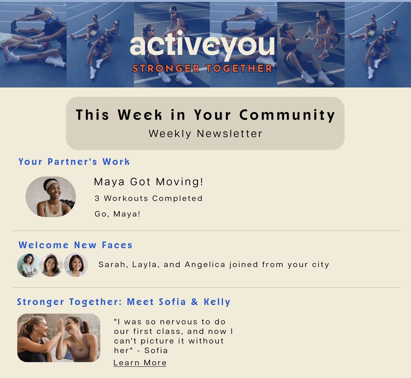 Built a marketing brief and lean brand guide for Active You, defining the ‘Stronger Together’ messaging and audience positioning, with visual assets and campaign-ready strategy created in Adobe Express.